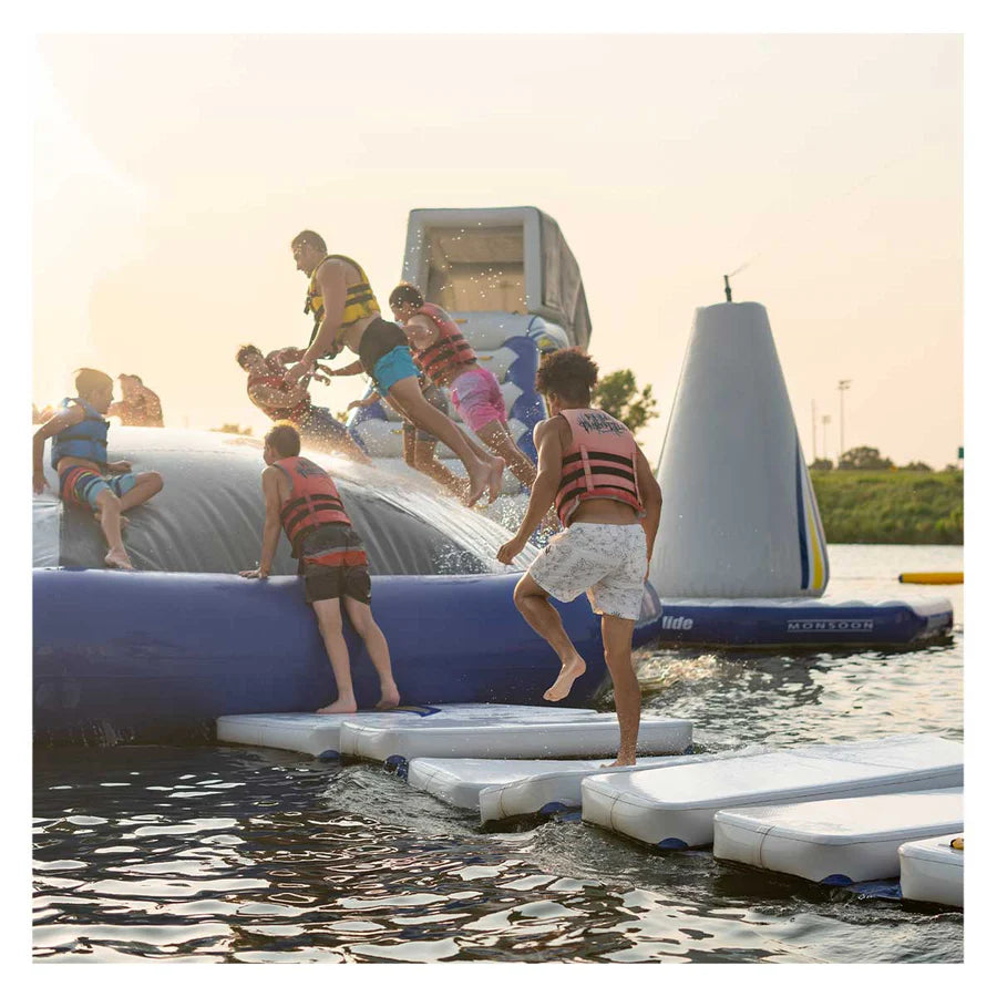 Defy gravity with the Aquaglide Walk on Water, a 20-foot floating runway that turns crossing into a thrilling balance challenge. Built for 8 adults or children, this high-traffic connector features class-leading 10 cm double-layer drop-stitch construction, designed to endure extreme climates and equatorial sun while offering a bouncy, wobbly path to test your water-walking skills. Use it standalone or link it to any Aquaglide Aquapark on 2 sides with the D-Ring Interloc system and 10 Vario-Lock™ straps. A tougher twist on the Speedway 20, it’s perfect for water parks, lakefronts, or resorts—stride, stumble, and splash your way across!