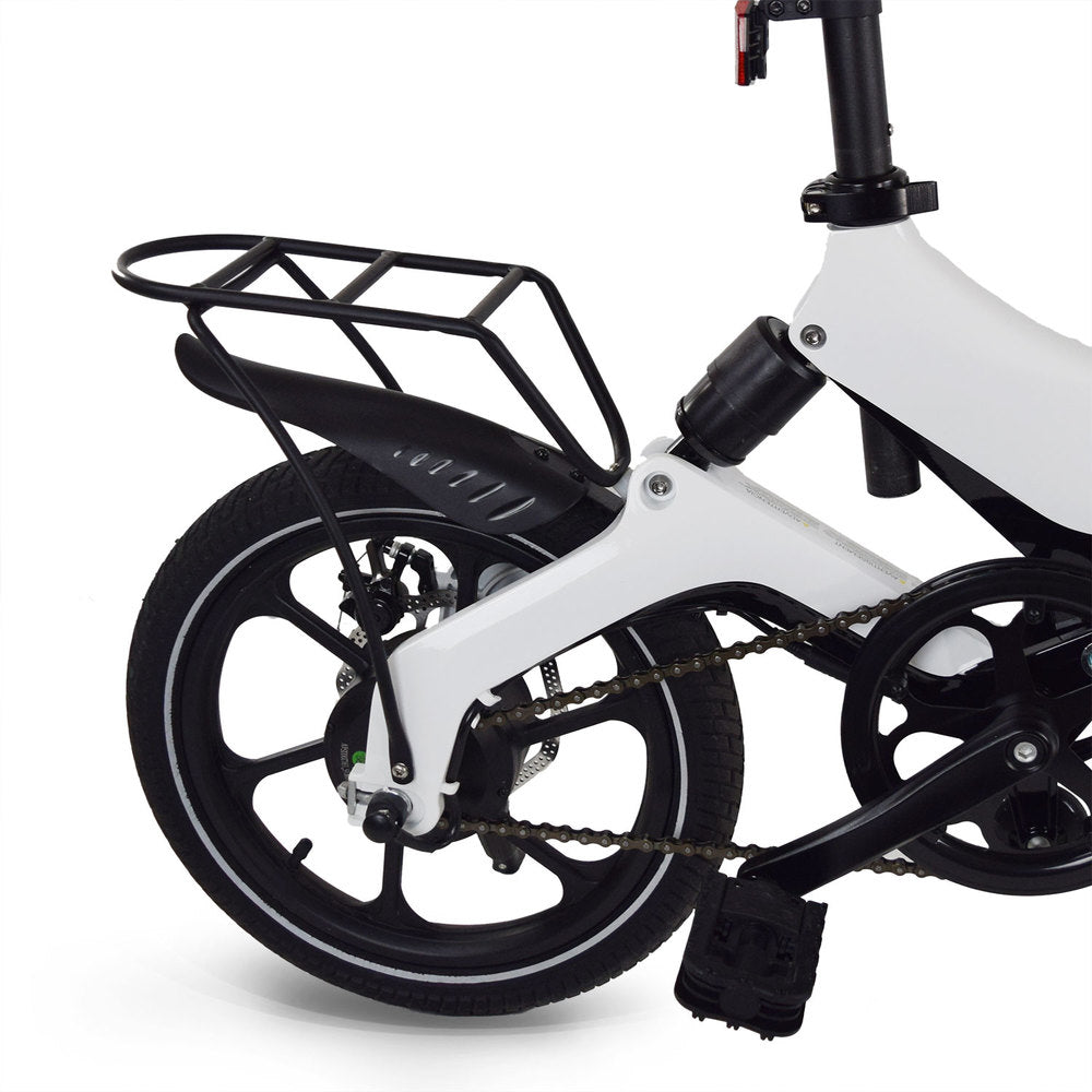 This solid aluminum, frame-mounted rack is durable and light-weight. Custom made for the Discovery X5 Folding Electric Bike. Perfect for carrying bags, backpacks, coolers, etc. Rear Cargo Rack measures 12.5" length x 5" wide x 10.6" tall and may require some minor hand bending to properly fit. *Bag shown in image not included.