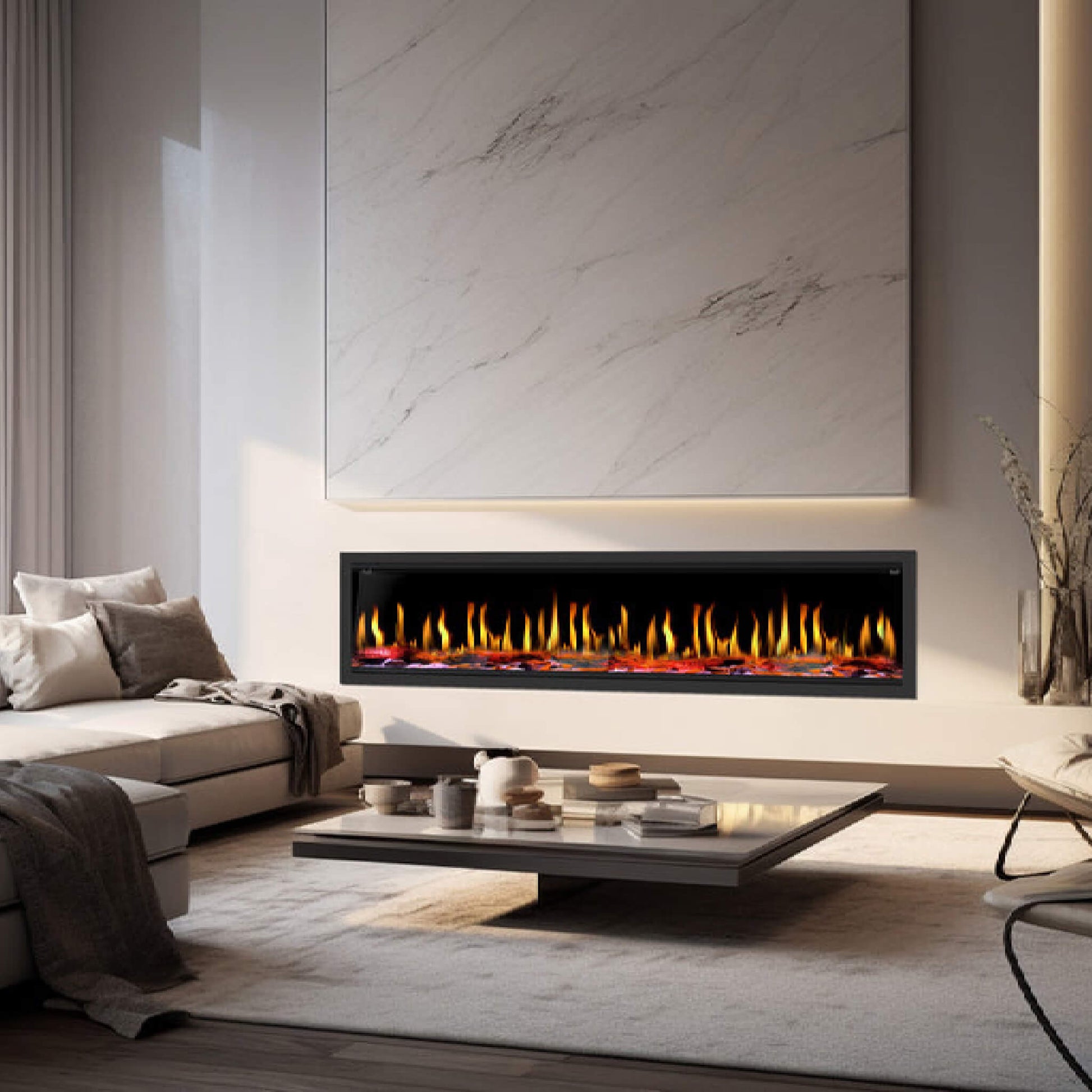 Redefine your space with the Dynasty Tempo 76" Virtual Linear Electric Fireplace, a sleek, modern centerpiece that combines stunning visual effects with smart convenience. Designed for both residential and commercial settings, this linear fireplace features ultra-realistic flames with 9 customizable styles, adjustable brightness, and multi-color flame bed options—perfect for setting the right mood for any occasion.