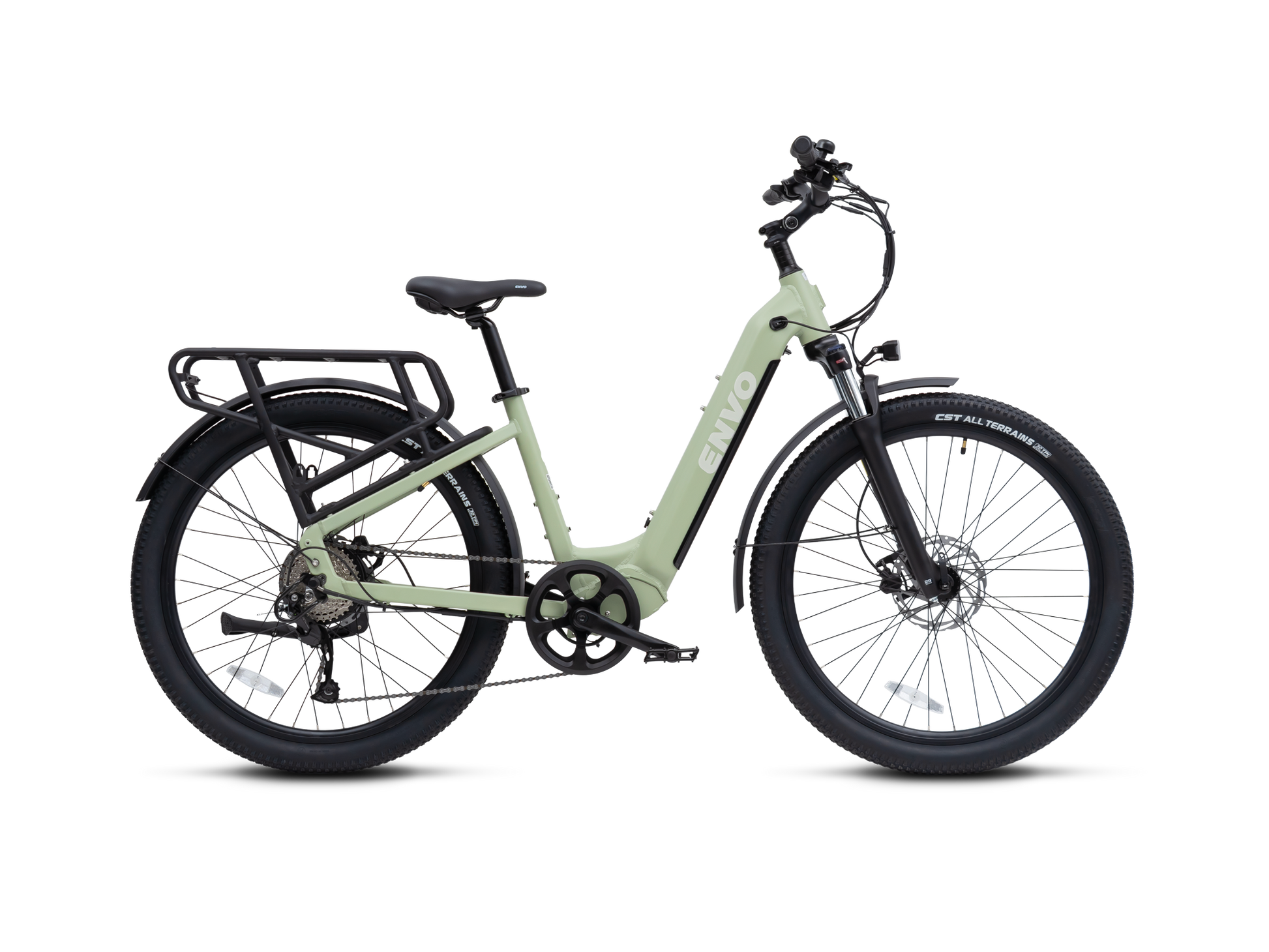 The ENVO ST50 is the ultimate all-terrain Class 3 electric step-thru bike, built for comfort, versatility, and strength. Combining the ease of a low-step frame with the power of a 750W rear hub motor, it’s perfect for commuters, adventurers, and cargo haulers alike.