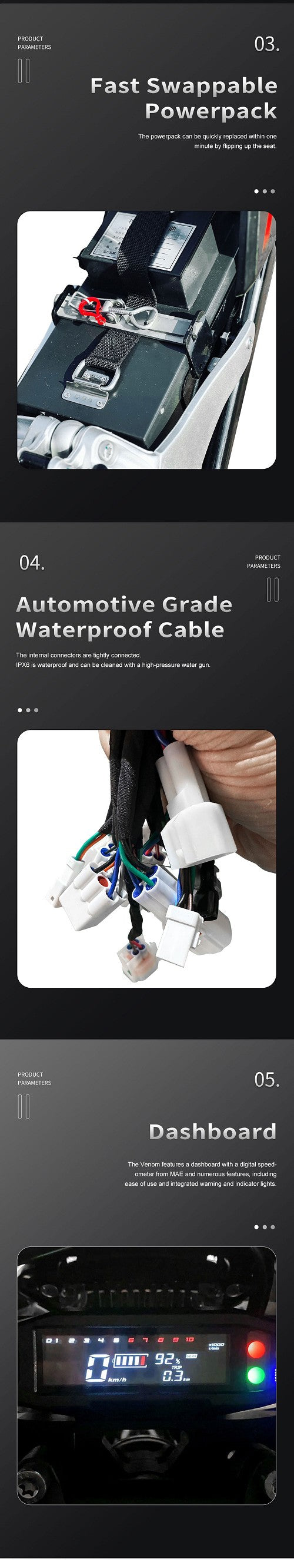 Crafted with a lightweight aluminum frame, manual 5-speed transmission (4 forward gears + reverse), and rugged off-road tires, the Venom delivers a responsive, thrilling ride. Customization is key—add the Bluetooth controller adapter to fine-tune power, throttle, and speed to match your terrain and style. With hydraulic disc brakes, fully adjustable suspension, and IP65 water resistance, it's built for adventure—and built to last.