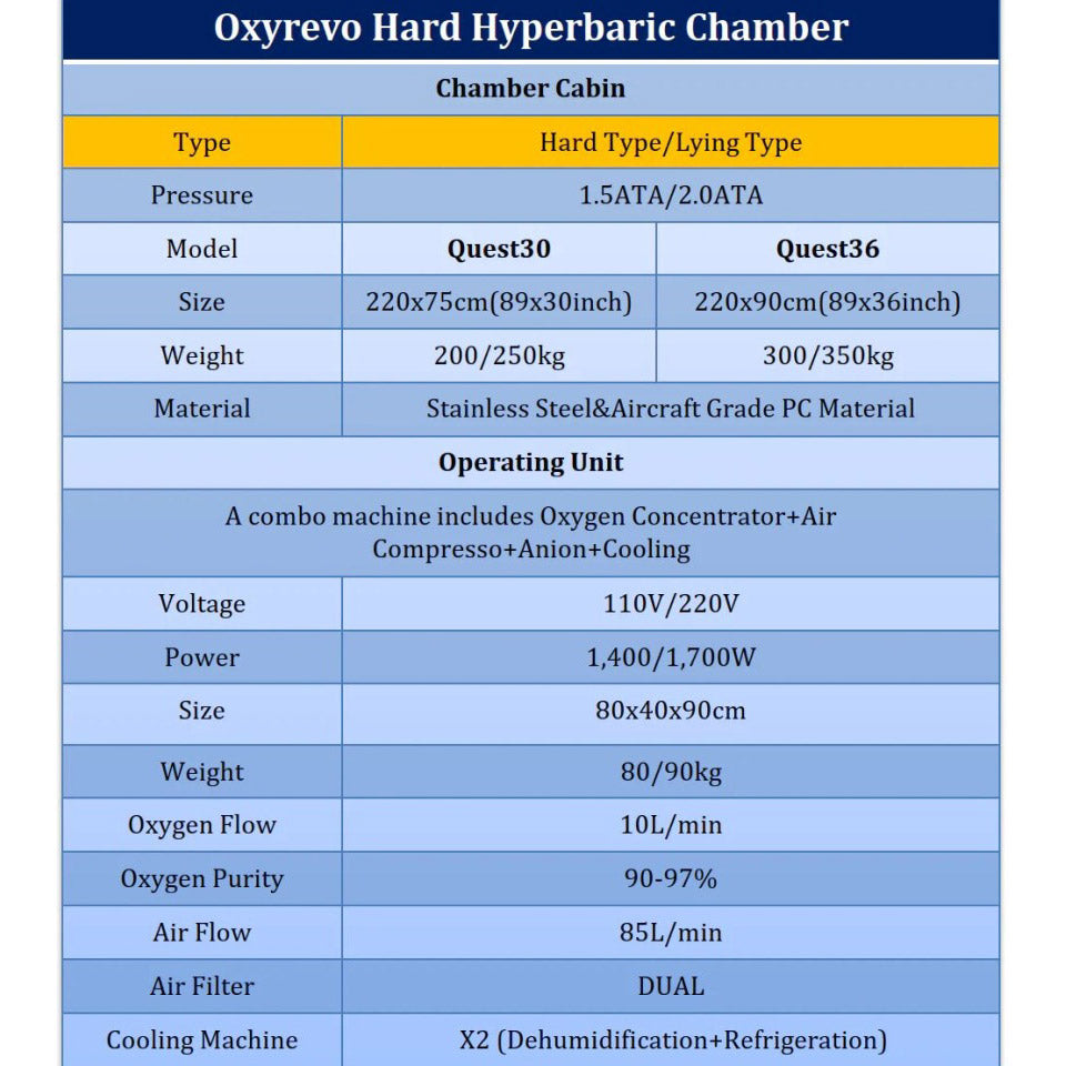 OxyRevo Quest36 Hard Hyperbaric Chamber (1.5–2.0 ATA) | Professional-Grade Hard-Shell Oxygen Chamber for Home & Clinic Use
