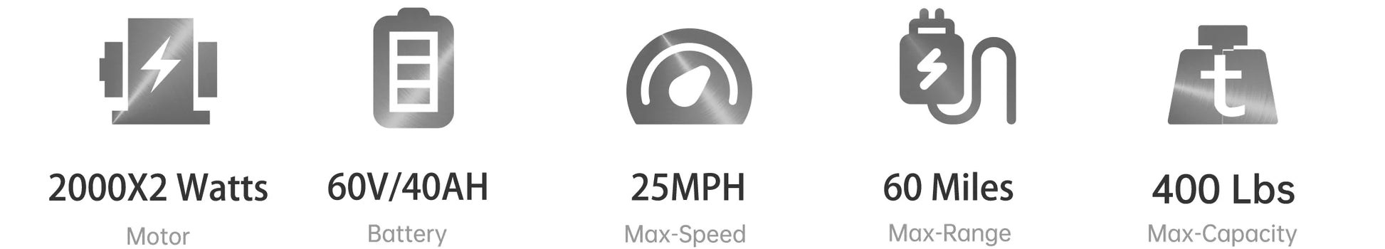 Dual 2000 W Motors (4000 W total): Delivers exceptional torque and acceleration for climbing steep hills and navigating rugged terrain.